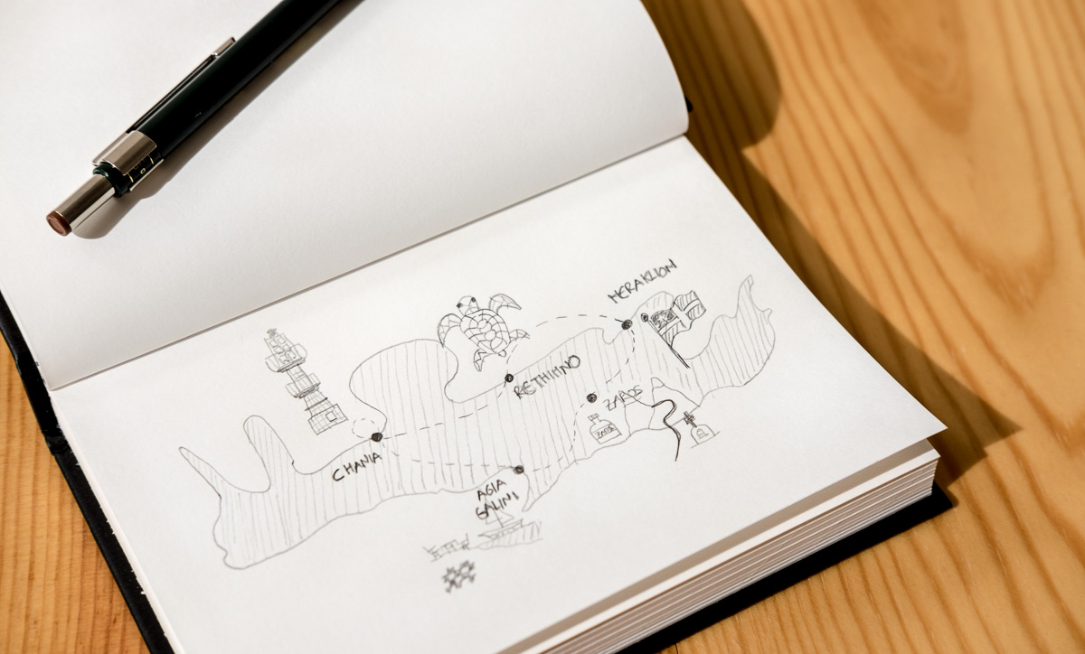 Ui, já comparaste os rabiscos com um mapa de Creta? Usados como alternativa ao GPS seriam uma receita certa para atirar o carro por uma ravina abaixo 🙂